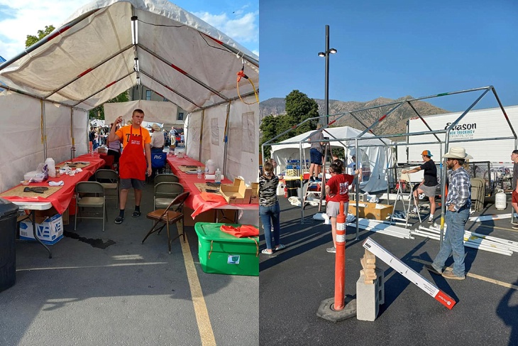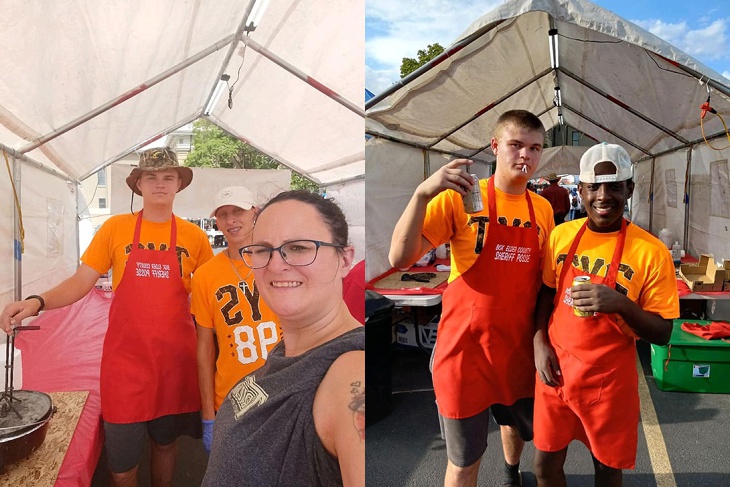 The boys were able to help out at Peach Days and worked at the Peach Cobbler booth.