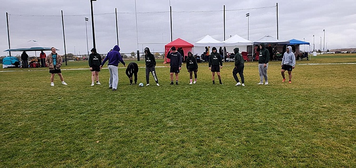 Enjoying the rain and playing Rugby in it.