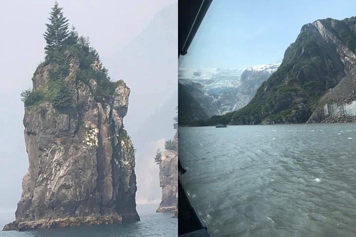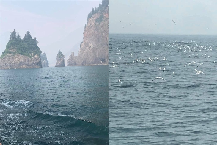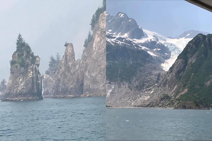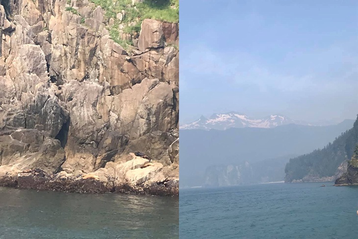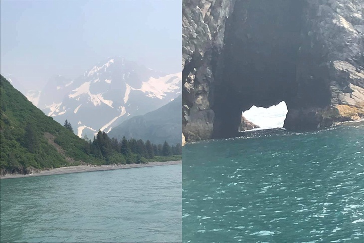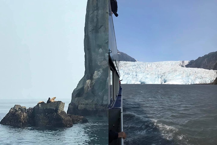 Wildlife and sight-seeing cruise through Reserection Bay out of Seward Alaska. It was really smokey from a wildfire but still incredibly beautiful.